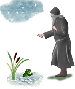 В одном монастыре рядом был пруд, и там квакали лягушки. Монахи начинают молиться, а лягушки заливаются на все голоса. Один монах не выдержал, подошел к пруду и говорит: «Замолчите! Вот мы сейчас закончим вечерню, тогда и квакайте на здоровье». А одна лягушка отвечает ему на его родном языке: «Как только мы закончим утреню, тогда и замолчим».